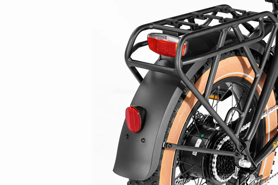 20” x 4’’ tires enable you to traverse any terrain with ease while retaining the nimble feeling of a 20" tire. It's the best of both worlds! The large 203mm rotors and Tektro hydraulic brakes allow for extremely efficient and powerful braking.