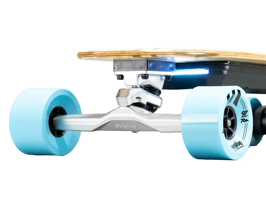- SUPER CARVE TRUCKS: Every Evolve board is built to carve like a dream with Evolve's forged Super Carve Trucks. Stable at speed but still allowing you to turn on a dime due to the double barrel design, we have a range of compatible bushings so you’ll be able to perfectly tune them to your liking