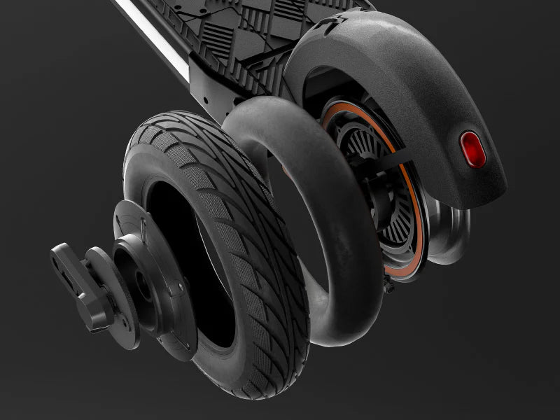 The split hub rim makes changing a flat so much easier than most scooters on the market. Simply remove one side of the hub, replace your tube/tire and replace the rim. Get back on the road in no time!