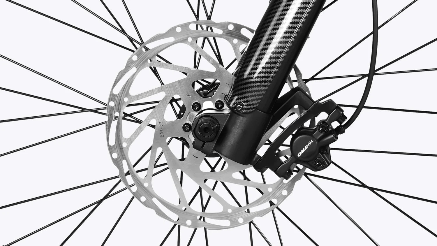 Tektro Hydraulic Brakes with 180mm RotorsHydraulic brakes provide superior braking performance and durability. With proper maintenance, there won't be a decline in braking power for 5 years.